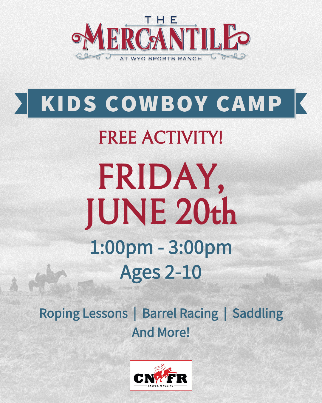 One of Casper's newest facilities, the WYO Sports Ranch, is proudly hosting the Mercantile this year during CNFR week, where just across the parking lot from the Ford Wyoming Center, you'll find over 60 unique vendor booths to explore. If you love shopping, this is THE place to be during CNFR week in Casper, Wyoming! They will also have food trucks, bull riding competitions, and fun zones for the kiddos. Doors are open Tuesday, June 17th - June 21 from 10:30-7pm each day.