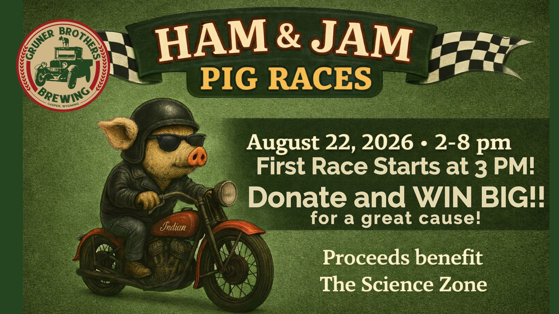 Annual Ham & Jam at Gruner Brothers Brewing pig races Saturday, August 22nd! You don't want to miss these cute, curly-haired swift swine as they race for Glory and Fame!