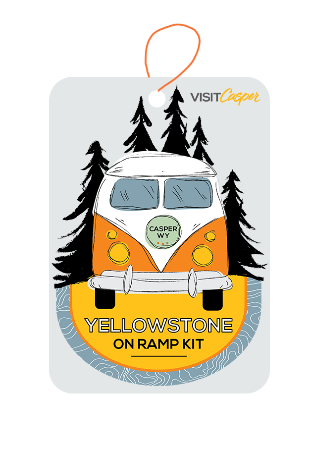 | On the Road to Yellowstone Luggage Tag | On the Road to Yellowstone Car Air Freshener | Casper Official Guide and Trip Planning Itinerary | Adventure Starts Here Postcard |